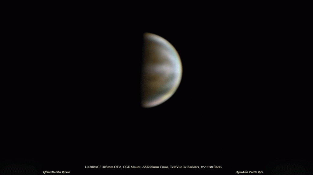 La entidad educativa compartió una impresionante imagen de Venus captada desde la Isla por Efrain Morales, uno de los astrofotografos de la organización. En la foto se aprecian hasta nubes y algunos detalles de la atmósfera del brillante planeta, que se observa en estos días hacia el Este, justo antes del amanecer.