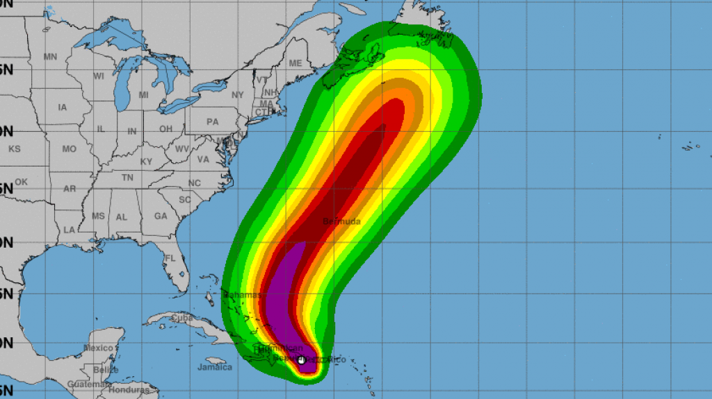 Fiona se ubica actualmente en 18.8 grados latitud norte y en 69.0 grados longitud oeste, y se desplaza hacia el noroeste a unas ocho millas por hora.