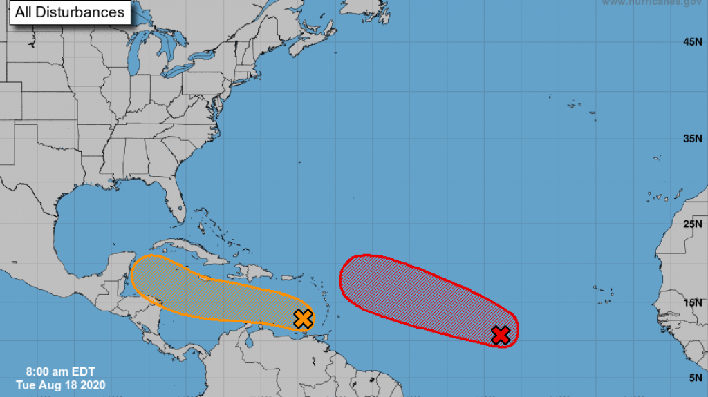 El Centro Nacional de Huracanes monitorea a dos ondas tropicales. La primera onda tiene un 20% de potencial ciclónico en 48 horas y un 60% en 5 días. De hecho, ya esa onda (Invest97L) se ubica distante, al sur de Puerto Rico. No recibiremos efectos asociados, sino que tendremos calor y poca lluvia hoy. Ese sistema pudiera ganar algún desarrollo más adelante, en el oeste del Caribe o hacia el Golfo de México.