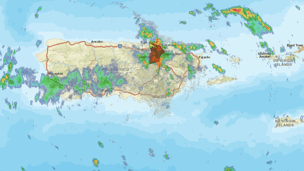 Según el SNM, a eso de las 4:48 de la tarde, el radar Doppler detectó tormentas eléctricas que producían fuertes lluvias en el área advertida. Entre 1 y 3 pulgadas de lluvia ha caído. Cantidades adicionales de lluvia de 1 a 2 pulgadas son