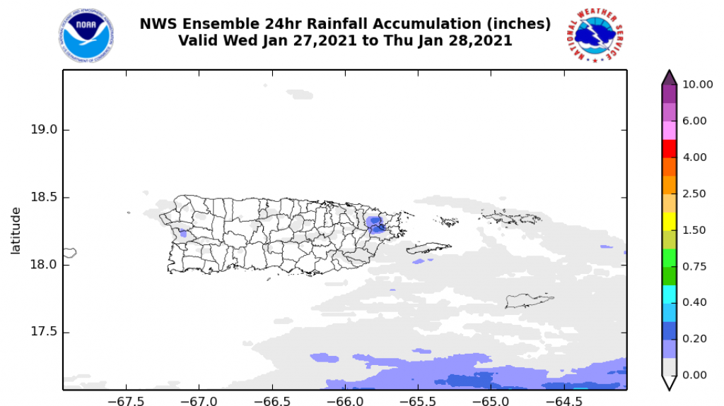 Disfrutamos de otra mañana muy fresca, con temperaturas mínimas que estuvieron en el rango de los 60ºF en varios municipios. Mientras, hoy el tiempo estará soleado. Solo unas lloviznas leves y breves llegarán al este, con escasa acumulación.
