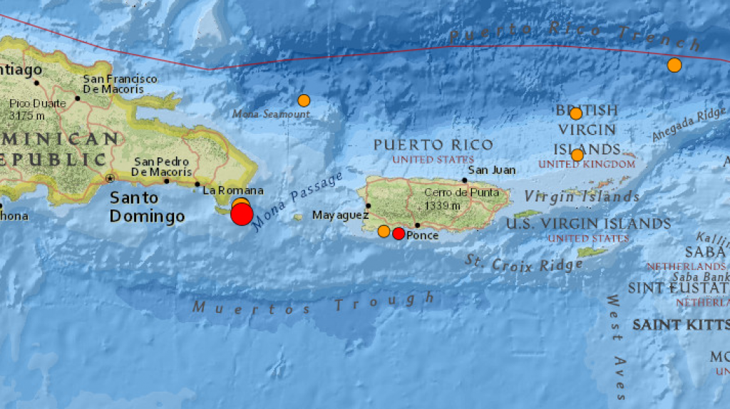 El Servicio Geológico de Estados Unidos (USGS) ubicó el sismo al oeste de la Isla de Mona, en la latitud 18.12 grados Norte con la longitud 68.49 grados Oeste, a una profundidad de 87 kilómetros.