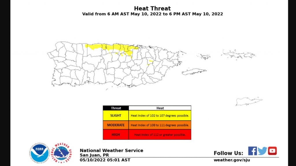 Sin embargo, el calor intenso durante el día en combinación con efectos locales y diurnos podría ocasionar aguaceros de aislados a dispersos, pero mayormente sobre el noroeste de Puerto Rico.