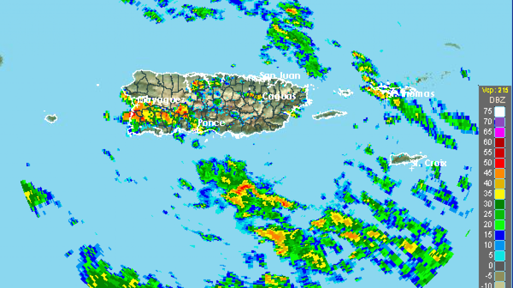 A la 1:21 de la tarde el radar Doppler encontró lluvia fuerte a causa de tronadas que producirá inundaciones.