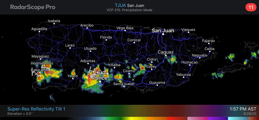 Fuertes lluvias y tronadas afectan a municipios del interior, sur y suroeste de la isla. A las 2:00 p.m., el radar detectaba aguaceros y tormentas eléctricas en sectores entre Aibonito y Ponce, también entre Peñuelas y Cabo Rojo.