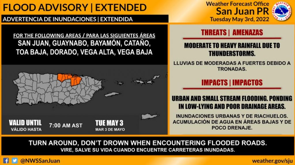 En tanto, usuarios de redes sociales informan de inundaciones en Guaynabo, Bayamón y Cataño. INS