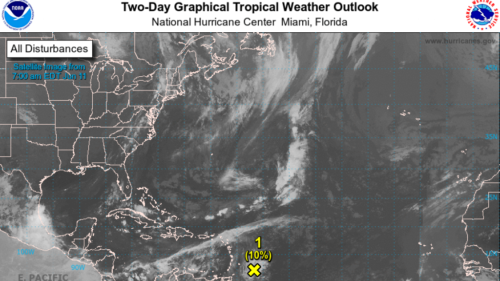 Entretanto, el Centro Nacional de Huracanes vigila a una onda tropical en bajas latitudes del Atlántico. Su potencial es de apenas un 10%, y está muy al sur. Aumentará la inestabilidad (potencial de lluvia) el sábado, en Puerto Rico. No hay porqué preocuparse.
