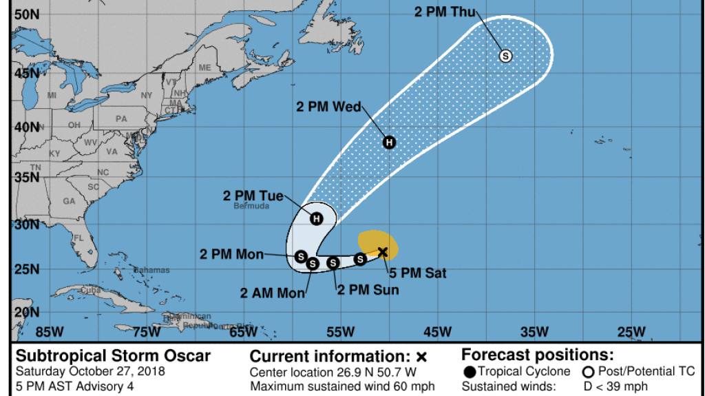 La tormenta subtropical Oscar, con vientos de 60 mph, continúa desplazándose sobre aguas abiertas del Atlántico. El sistema podría convertirse en huracán en los próximos días, lo cual generará marejadas desde el norte-noreste. Estas llegarán a nuestras islas el lunes; por lo cual, las condiciones marítimas sufrirán un deterioro. Adicional a este, no tendremos otros efectos asociados al fenómeno. Cabe destacar que no hay ningún otro con potencial ciclónico o en vías de desarrollo.