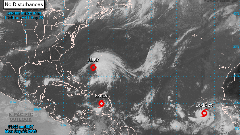 Karen está muy desorganizada, mientras se desarrolla la tormenta Lorenzo