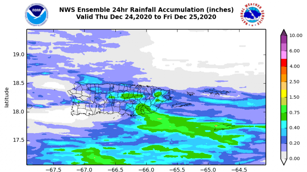 Mientras las condiciones marítimas están deterioradas, manifiestan olas de 3 a 8 pies en aguas del Caribe y de 8 a 10 pies en el Atlántico. Por tal razón, hay un riesgo moderado de corrientes submarinas en la mayoría de las playas del Caribe y aún más elevado hacia las costas del Atlántico. Operadores de embarcaciones pequeñas deben ejercer precaución (tienen advertencia) y deportistas deben practicar sus respectivas actividades con mucha cautela, evitando de ser posible sumergirse a costas desprotegidas.