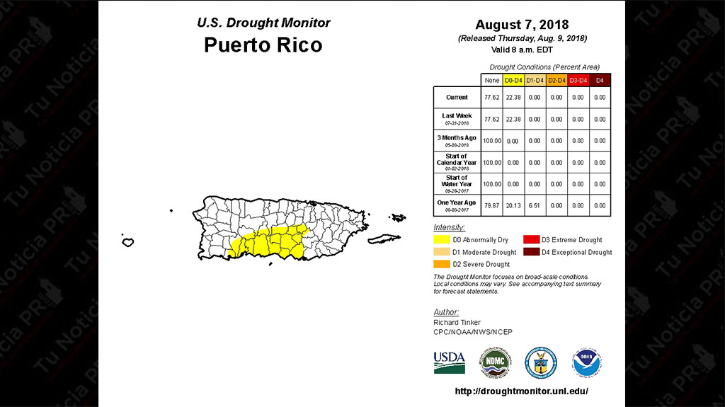 El panorama de la sequía no presentó cambios desde la pasada semana, con lo que 22 municipios del sur y hacia el centro de isla se mantienen en condiciones anormalmente secas.