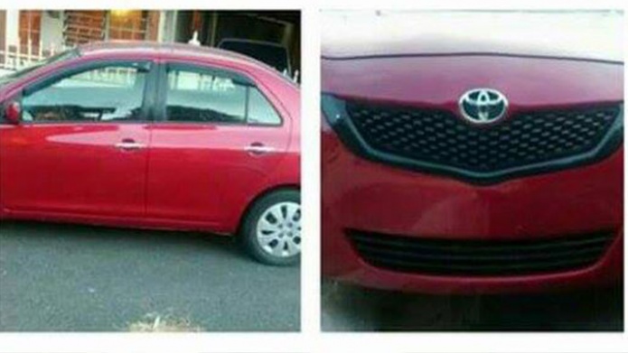 Este Toyota Yaris Rojo Tablilla HJF-696, fue hurtada el 13 de Octubre enToa Baja. Los (handle) en las puertas son cromeados y tiene Vent Visor