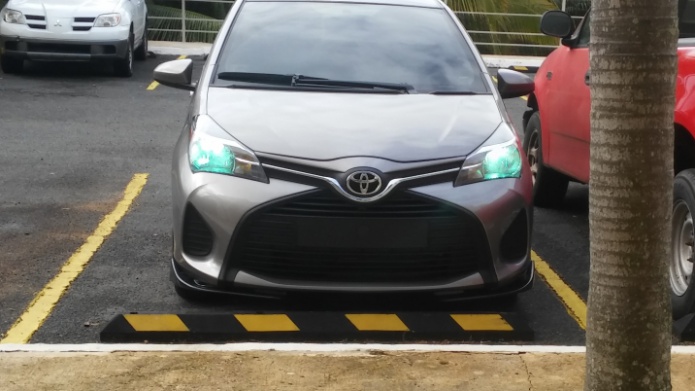 Este Toyota  Yaris 2015 hb Color Bronce aunque parece Gris Tablilla IOV469 Tenía HID, Tintes y un Sticker en el cristal de atrás en la esquina, fue robado de Terrazas del Cielo en Toa Alta.