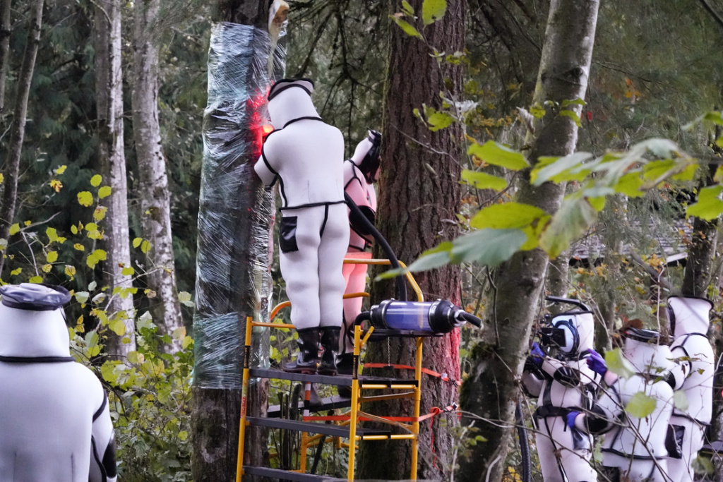 Después de aspirar los insectos, los empleados del WSDA llenaron la cavidad del árbol con dióxido de carbono.