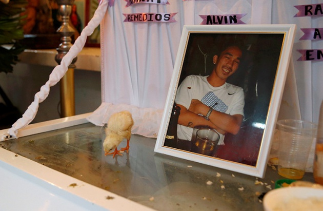Un polluelo, que simboliza 'justicia' en la cultura filipina, cerca del cuerpo de Eric Quintinita Sison, un hombre que fue abatido a tiros por la Policía durante una operación reciente en la ciudad de Pasay (Filipinas). Erik de CastroReuters