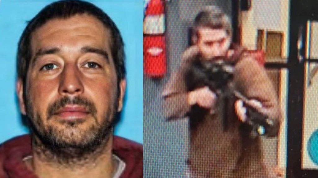 La oficina del alguacil del Condado de Androscoggin publicó dos fotografías de este sospechoso en su página de Facebook, indicando que se encontraba prófugo. El hombre, de barba y vistiendo una camisa de manga larga y pantalones vaqueros, sostenía un rifle en posición de disparo en las imágenes difundidas.