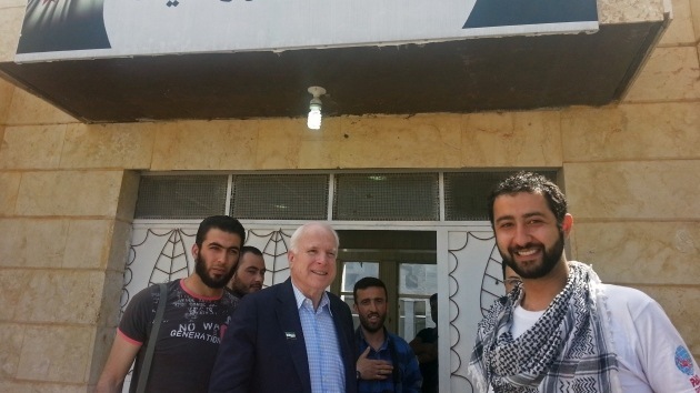 En calidad de senador de Arizona, McCain visitó Siria en mayo de 2013. En el marco de aquella visita, se reunió con representantes de los rebeldes sirios que calificó de oposición moderada. Cuando salieron a luz fotografías de aquella visita, el senador Rand Paul denunció que varias personas que aparecían en las imágenes estaban vinculadas al Estado Islámico y criticó a McCain por no saber distinguir entre fuerzas moderadas y radicales. La declaración de Paul estuvo seguida por una avalancha de críticas que afirmaban que las acusaciones carecían de pruebas suficientes.