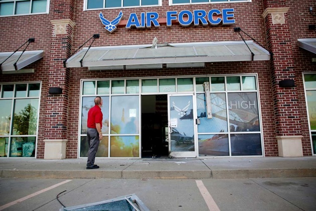Las autoridades dicen que el dispositivo estalló a eso de las 10:30 de la noche del lunes enfrente del centro de reclutamiento en Bixbysuburbio de Tulsa.