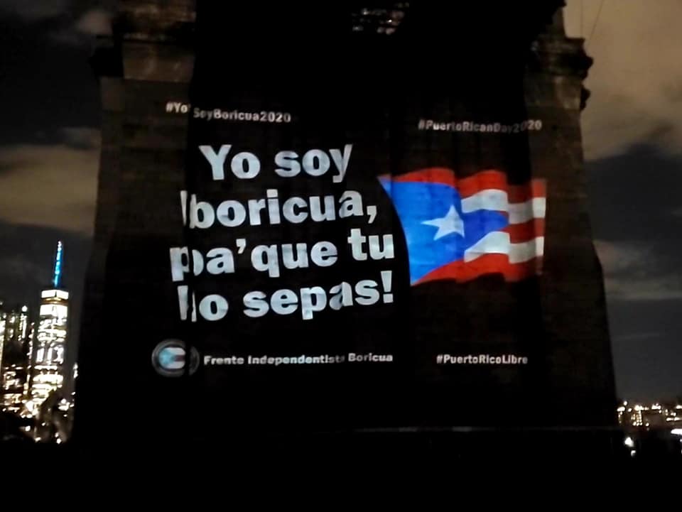 Una de las proyecciones bajo el Brooklyn Bridge proclama: "Independencia para puerto Rico”, nación caribeña que ha estado bajo el dominio colonial de Estados Unidos desde hace casi 122 años. INS