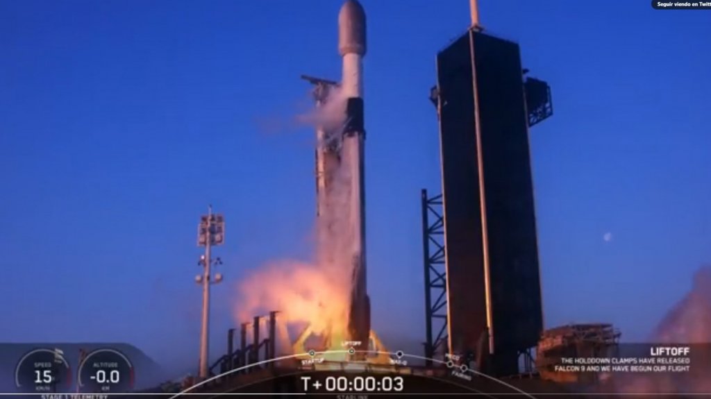La compañía aeroespacial SpaceX lanzó este miércoles desde el Centro Espacial Kennedy (Florida, EE.UU.) un cohete Falcon 9 y lo puso en una órbita terrestre baja con una carga útil de 53 satélites de Starlink, el servicio de internet propiedad de Elon Musk.