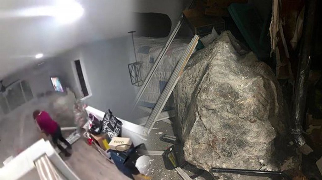 VIDEO:Familia se salva de milagro tras caer una roca gigante sobre su casa