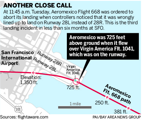 Un avión comercial de una aerolínea mexicana tuvo que abortar su aterrizaje en el Aeropuerto Internacional de San Francisco al enfilar hacia una pista ya ocupada por un jet comercial.