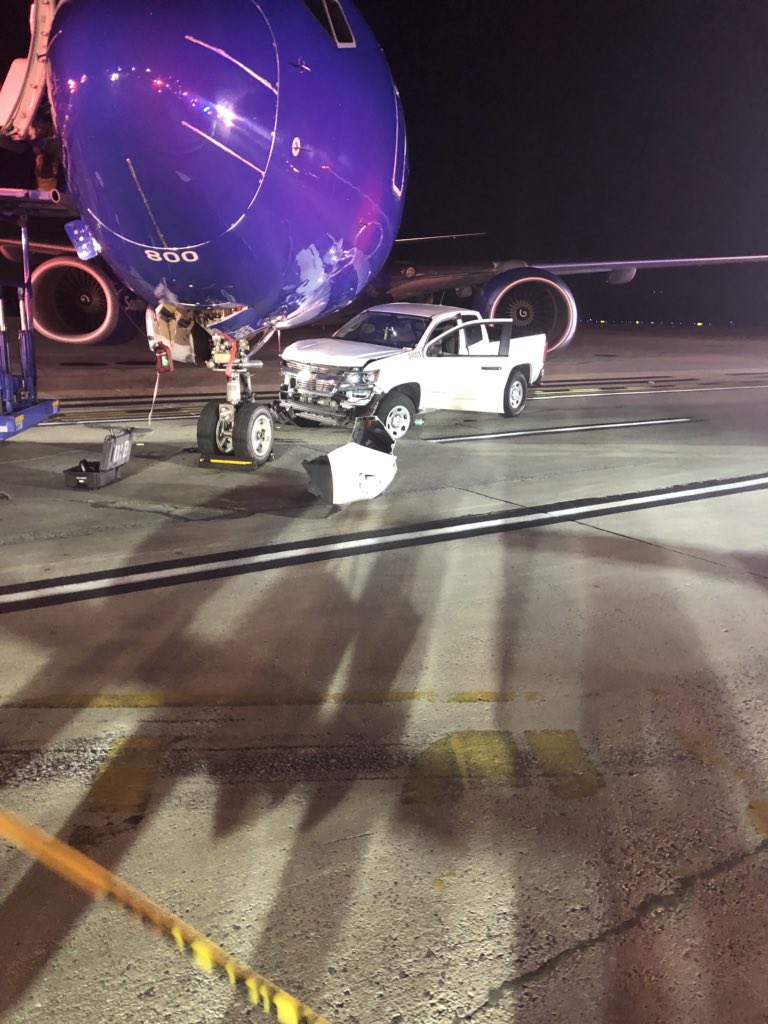Una camioneta en la pista del Aeropuerto Internacional de Baltimore-Washington Thurgood Marshall chocó con un avión de la compañía Southwest Airlines este lunes en la mañana, sin que se reportaran heridos entre los pasajeros.