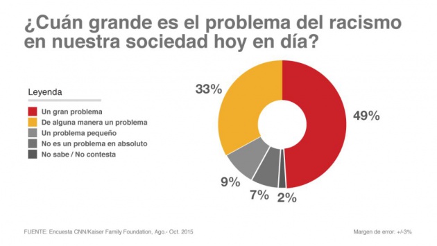 En una nueva encuesta realizada en todo el país por CNN y Kaiser Family Foundation, aproximadamente la mitad de la población en Estados Unidos, el 49 % para ser exactos, dice que el racismo es un "gran problema” en la sociedad de hoy.