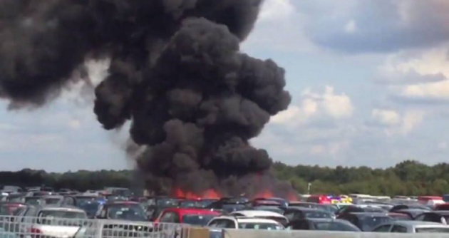 El Phenom 300 chorro de £ 7.000.000 , propiedad de la familia, de la compañía de Salem Aviación , estalló en una enorme bola de fuego después de la pista al intentar aterrizar en el aeropuerto de Blackbushe a 15:09 de ayer.