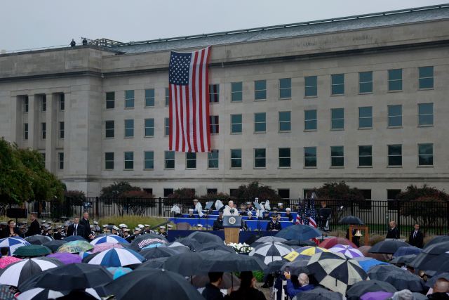 Biden estuvo acompañado por familiares de los caídos, socorristas que habían estado en el Pentágono el día del ataque, así como por líderes del Departamento de Defensa.