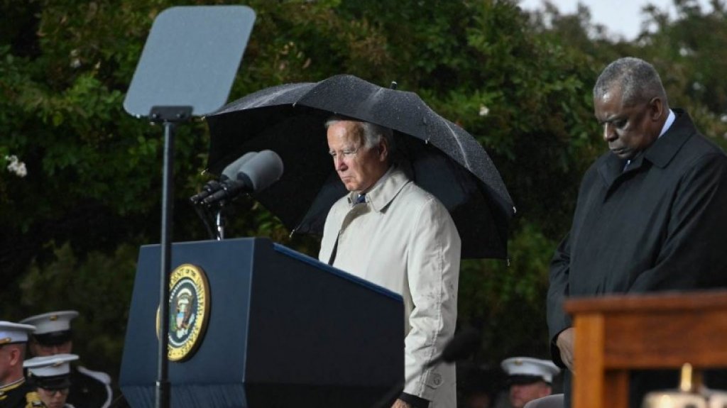 Biden durante su mensaje en la sede del Pentágono con motivo del 21 aniversario del 11-S