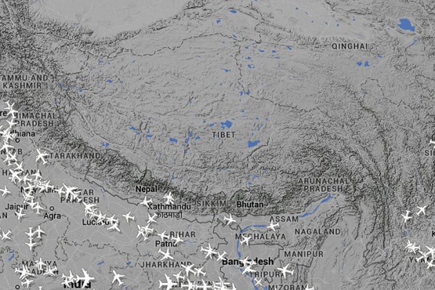 Es muy poco probable ver un avión en el cielo de las montañas más altas del mundo, las de la cordillera del Himalaya, por el riesgo de turbulencias. Así que normalmente los aviones evitan el Tíbet y el Himalaya a través del territorio de la India.