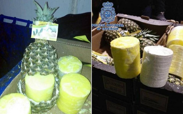 De acuerdo con un informe publicado por el diario madrileño El País, 200 piñas llenas de cocaína fueron descubiertas en un cargamento a bordo de un buque de contenedores que había zarpado de un país centroamericano no identificado.