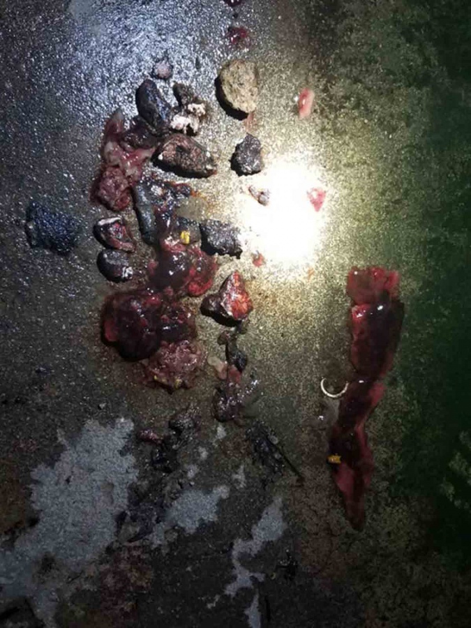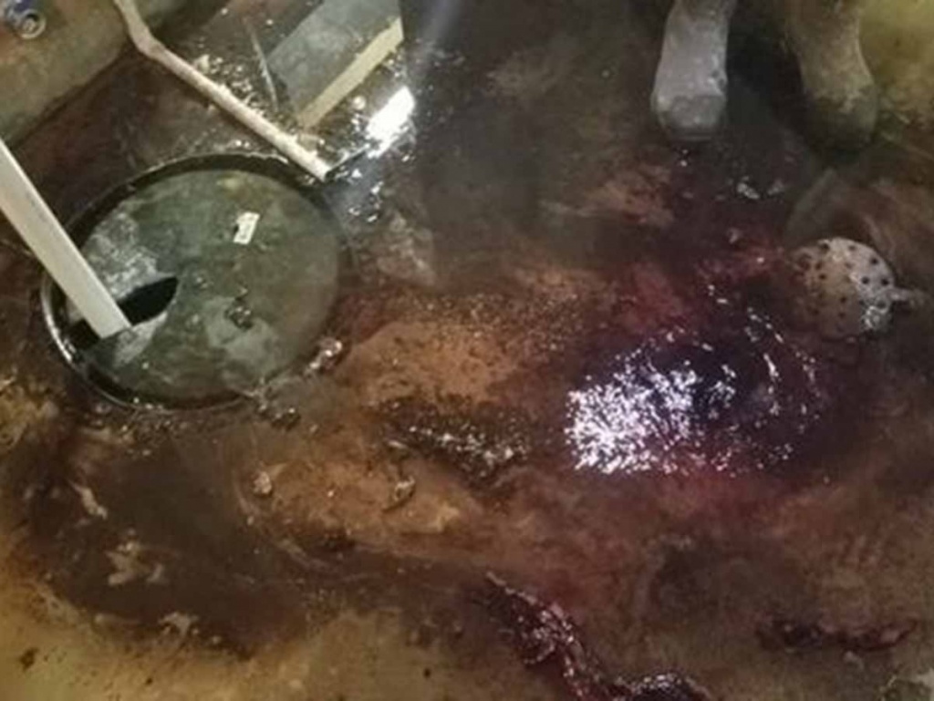 Los desperdicios provienen de un matadero cercano, donde la sangre y los tejidos de animales sacrificados fueron desechados por un desagüe. Las autoridades dijeron que una obstrucción o una fisura en la tubería enviaron la sangre y los tejidos al sótano de Lestina a través de un drenaje subterráneo.