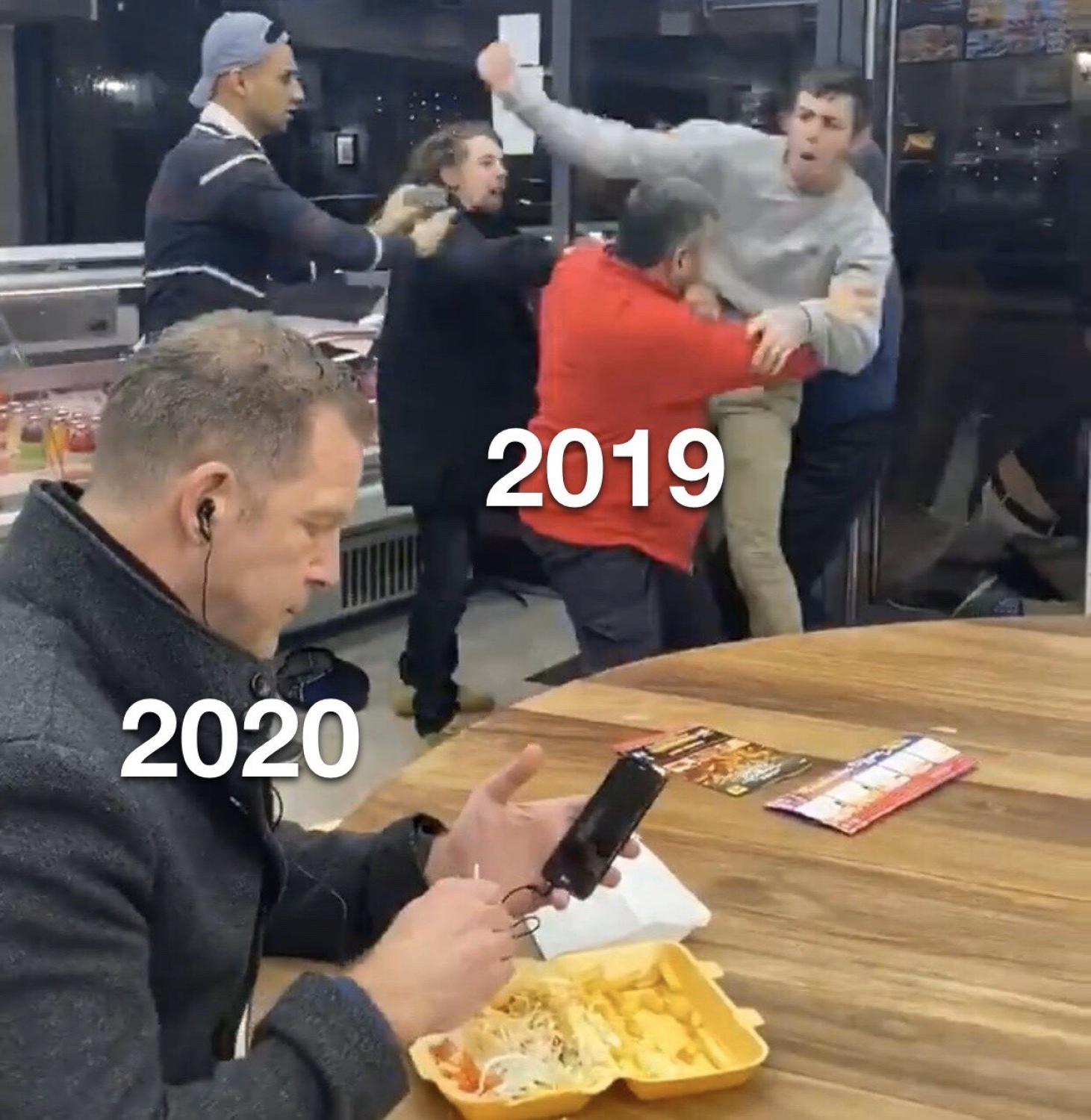 VIDEO: Un hombre come tranquilamente en medio de una gran pelea y se convierte en meme