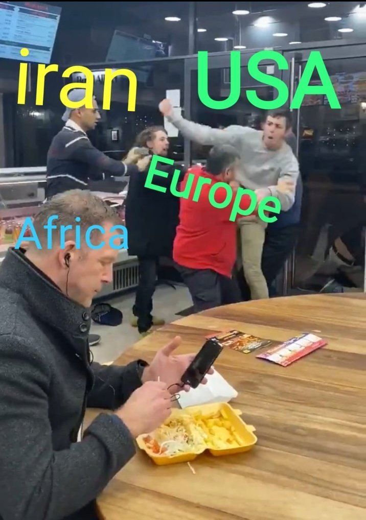 Los internautas alabaron la impasibilidad del hombre, quien se mantuvo impertérrito en medio del caos total desatado en el restaurante Ken’s Kebabs sin mostrar ningún interés en lo que estaba ocurriendo a su alrededor.