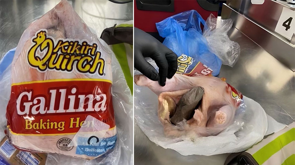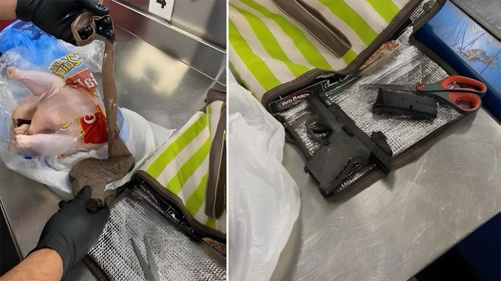 Fotos: Cae mujer tras intentar viajar con una pistola dentro de un pollo crudo