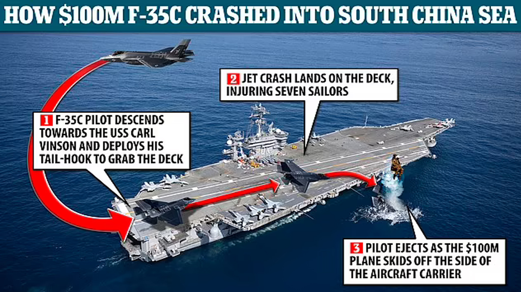 VIDEO: El momento exacto del “incidente de aterrizaje“ de un F-35 en un portaviones que dejó 7 marineros heridos en el mar de la China Meridional