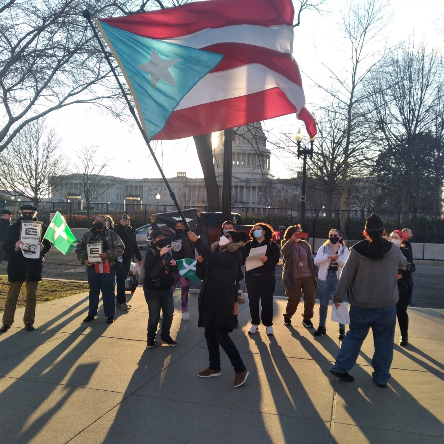 Frente al Capitolio de Estados Unidos de América, sede del poder imperial sobre Puerto Rico en pleno Siglo XXI, con una gigantesca pancarta de fondo que leía, "USA OUT OF PUERTO RICO, END      COLONIALISM AND OCCUPATION, YANKI GO HOME” se leyó una proclama que expresó el         compromiso organizado de l@s independentistas puertorriqueñ@s, dentro y fuera de Puerto Rico de acabar con la sumisión colonial y avanzar a la construcción de un país justo y libre fuera de las ataduras que hoy le limitan.