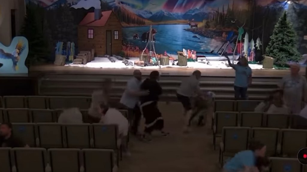 En video momento en que un hombre entra disparando a una iglesia de Detroit