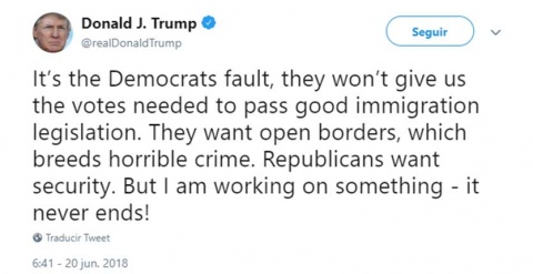 El presidente estadunidense está enfrentando una gran polémica en su país y en todo el mundo por esas separaciones, producto de la política de "tolerancia cero" hacia los migrantes sin papeles.