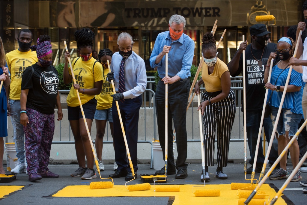 "¿Quién construyó esta ciudad, quién construyó este país y nunca recibió el reconocimiento? Cuando decimos que las vidas negras importan no se puede hacer una declaración más patriótica, porque no hay Estados Unidos sin los negros de Estados Unidos", dijo este jueves De Blasio al llegar a la calle 57 para "explicarle a Trump lo que significa" ese mensaje, brocha en mano.