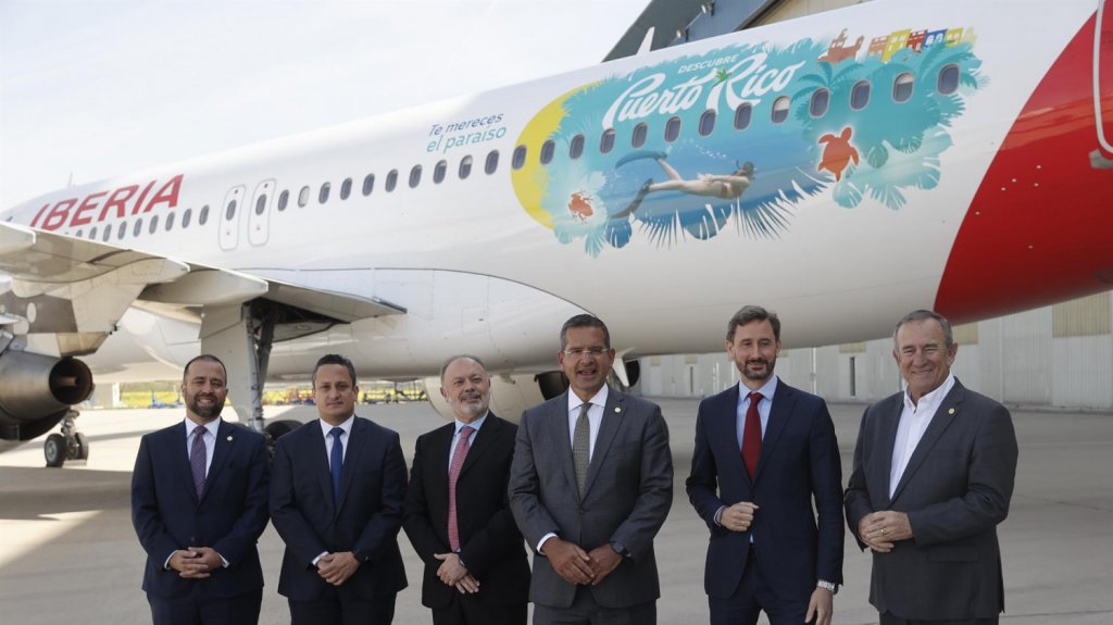 Iberia presentó un avión A320 decorado con una imagen de "Descubre Puerto Rico”, en un acto al que asistieron gobernador Pedro R. Pierluisi y el director de Clientes, Transformación y Tecnología de Iberia, Gabriel Perdiguero, junto con el director de la Compañía de Turismo, Carlos Mercado, y el director de Ventas Latam y Acuerdos Institucionales de Iberia, Víctor Moneo.