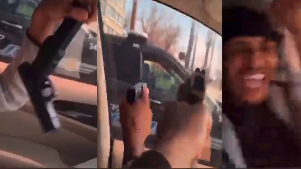 Los hombres, que aparentemente estaban en un auto con tintes, también se ven agitando las armas y riéndose todo el tiempo.