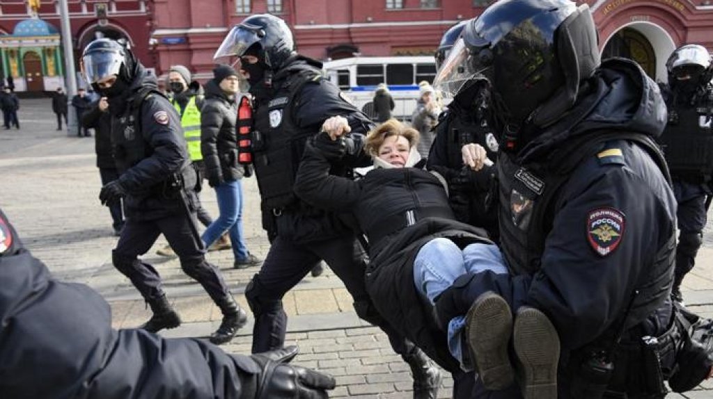 Periodistas de la AFP vieron a varios manifestantes que eran detenidos por militares en Moscú y en San Petersburgo, segunda ciudad del país.
