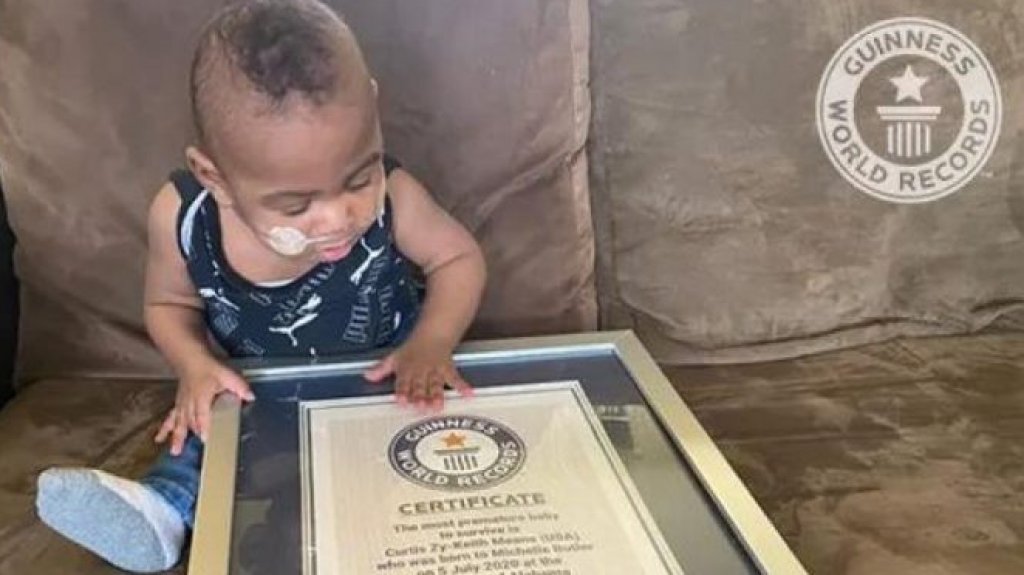 Un menor que nació con 21 semanas se convirtió en el bebé más prematuro del mundo en sobrevivir, por lo que recibió una distinción del libro Guinness.