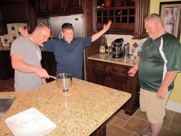 Ethan, 13, se ve en esta fotoen la casa de Alabama de su familia con sus padres Brett Jones, izquierda, y Jason White, a la derecha. Brett Jones fue el primer SEAL de la Marina abiertamente gay.