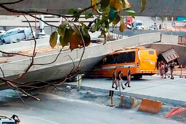 En el lugar trabajan los bomberos, varios helicópteros y equipos paramédicos. La vía era parte de la infraestructura de la copa del mundo pero no fue terminada a tiempo para el campeonato. El lugar del incidente se localiza a unos 3 kilómetros del estadio Mineirao, que ha acogido varios encuentros del certamen futbolístico y que será sede de una semifinal el próximo 8 de julio.
