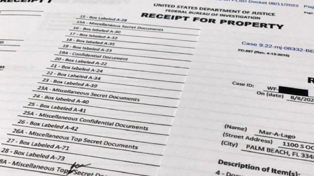 Un acuse de recibo desclasificado por la corte muestra que los agentes del FBI sacaron 11 cajas de documentos confidenciales de la propiedad en la operación del lunes.