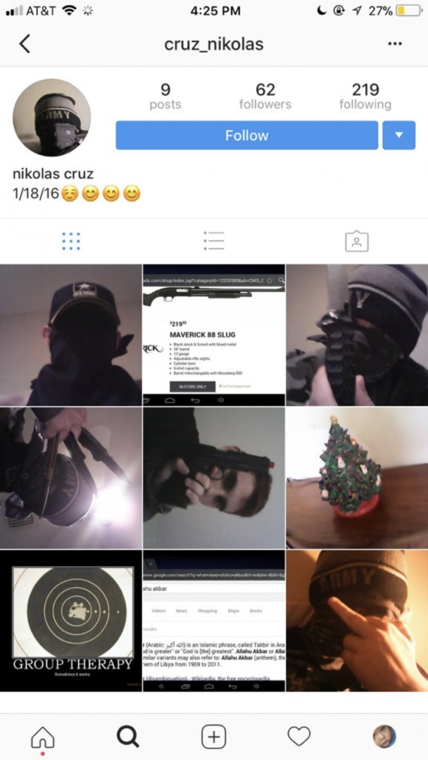 La cuenta de Instagram, registrada a ese nombre, que hace poco ha sido bloqueada, contenía varias fotos del presunto autor del tiroteo masivo. En la mayoría de las imágenes, como se puede juzgar por varias capturas de pantalla que se han vuelto virales en la Red, el individuo aparece con varios tipos de armas blancas y de fuego.